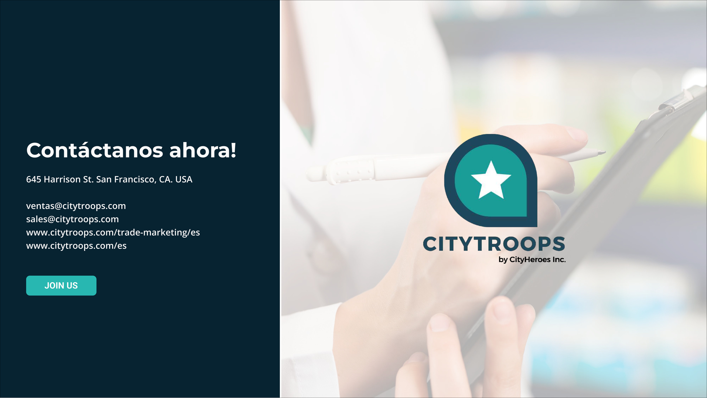 "En asociación con City Troop, Promueve Venezuela se complace en presentar los servicios digitales ideales para impulsar tu empresa hacia la era de la inmediatez y la eficiencia. Nos especializamos en el sector de consumo masivo y ofrecemos herramientas de campo diseñadas para obtener resultados rápidos. Te invitamos cordialmente a unirte a la nueva era de servicios eficientes de Promueve Venezuela. La alianza con City Troop marca el camino hacia soluciones digitales innovadoras para potenciar tu negocio."